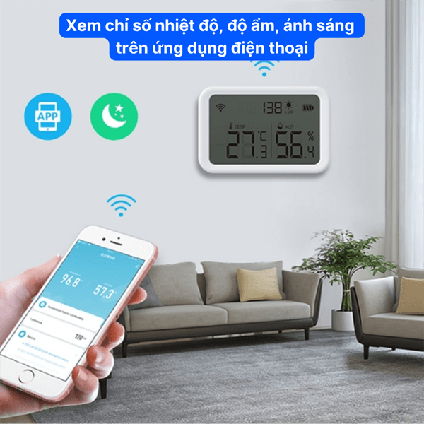 – Màn hình LCD hiển thị nhiệt độ, độ ẩm, mức pin
