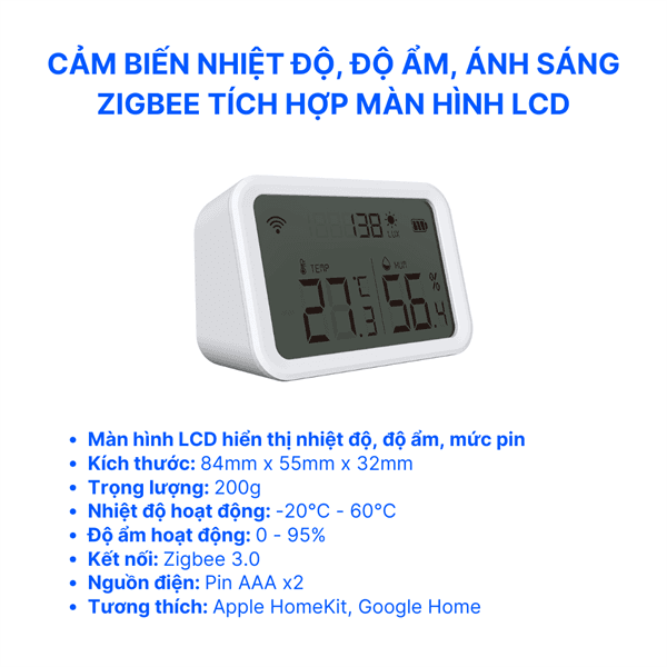 Cảm biến nhiệt độ & độ ẩm không khí có màn hình Zigbee