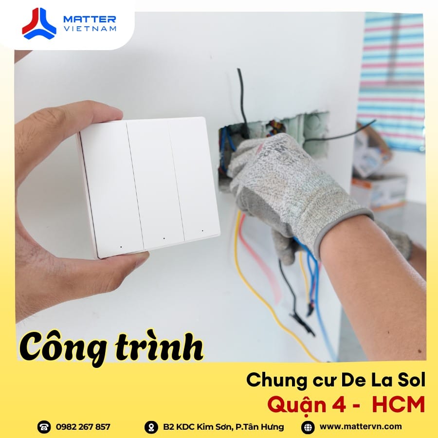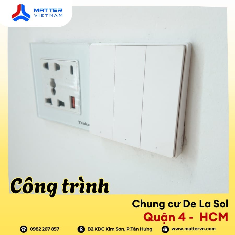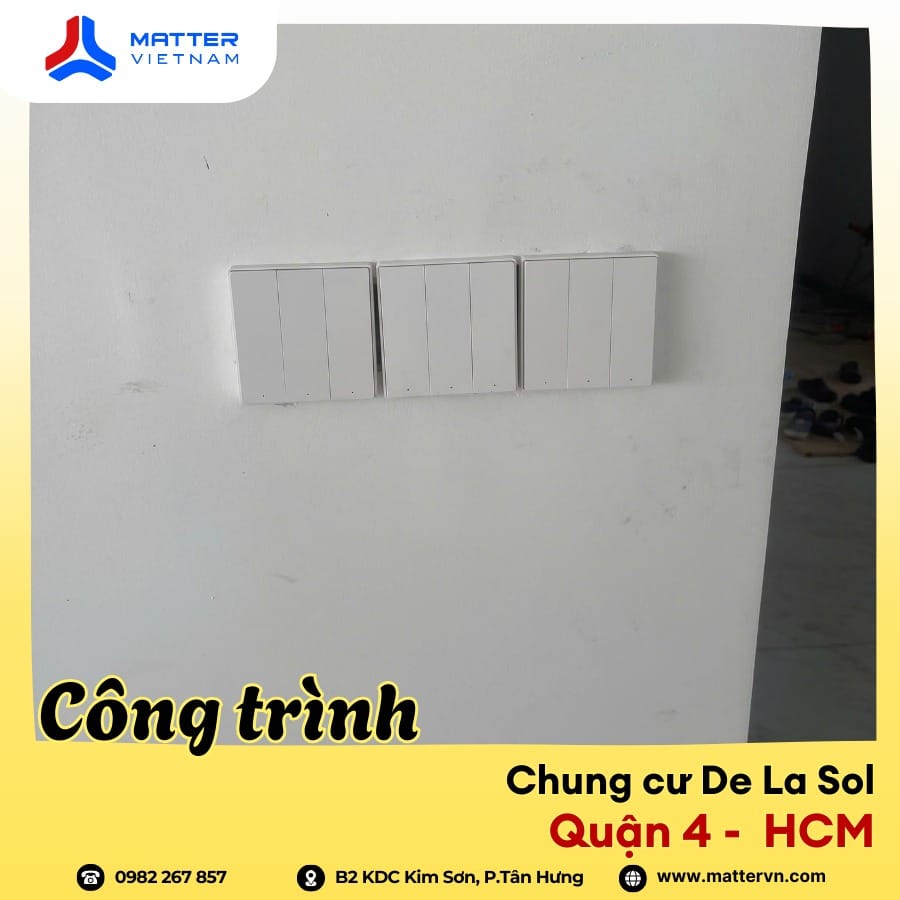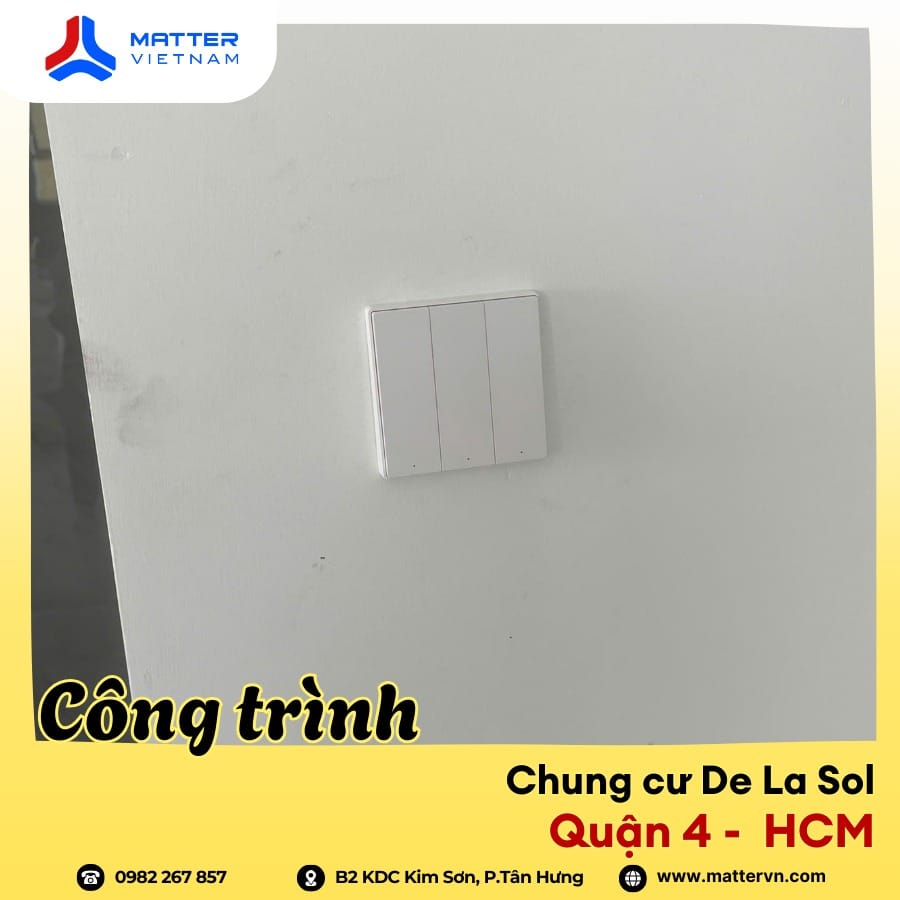 Matter Việt Nam vừa hoàn thiện hạng mục lắp đặt hệ thống công tắc thông minh cho một căn hộ tại Chung cư De La Sol, Quận 4. Đây là một trong những công trình điển hình cho xu hướng nâng cấp smarthome tinh gọn, không can thiệp sâu vào kết cấu căn hộ nhưng vẫn mang lại sự thay đổi rõ rệt trong trải nghiệm sinh hoạt hàng ngày.
