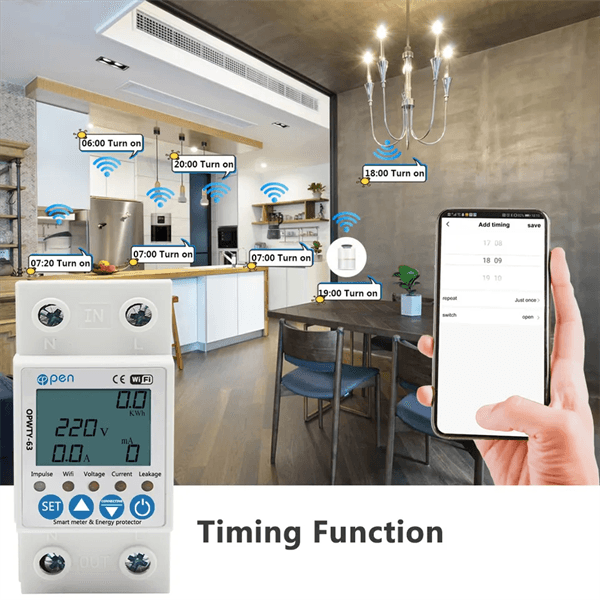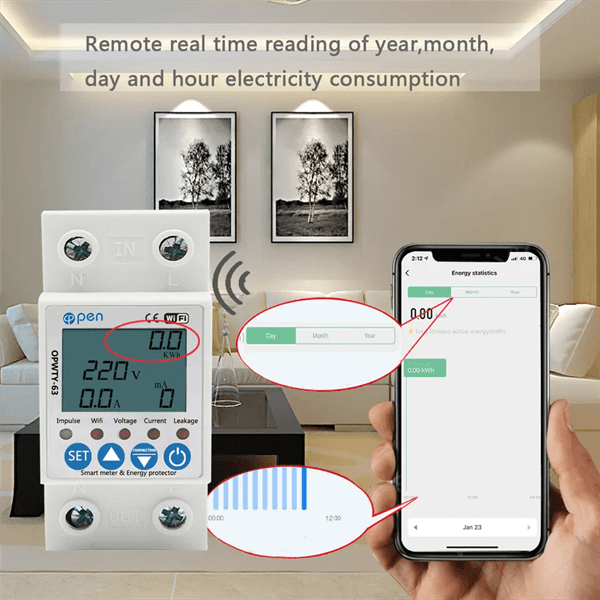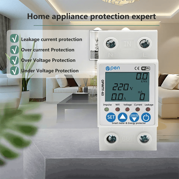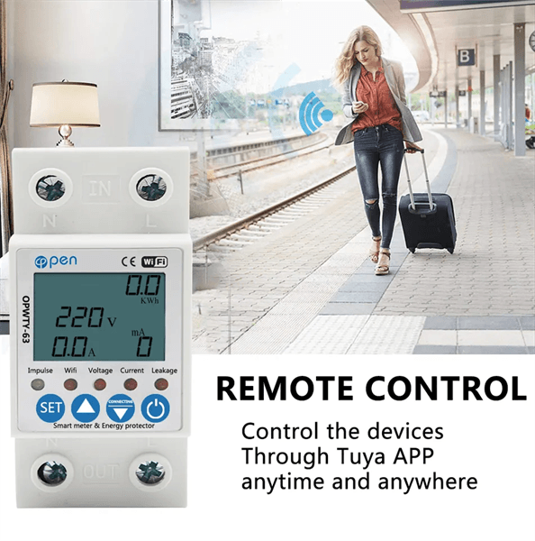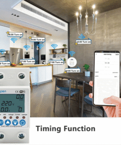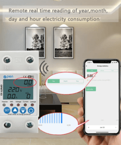 – Thông số đo: điện áp (90 – 250V), dòng (đến 63A), công suất(W), sản lượng (kWh)