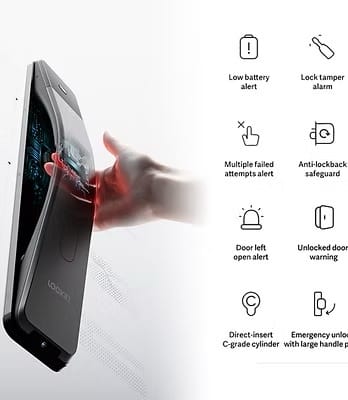 – Cảnh báo thông minh: cảnh báo pin yếu, quên đóng cửa, báo động phá khoá