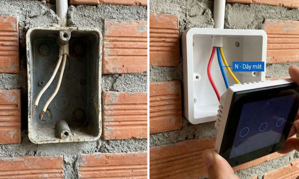 Hướng dẫn kỹ thuật đi dây mát (N) và sử dụng đế âm vuông khi lắp đặt công tắc nhà  thông minh.