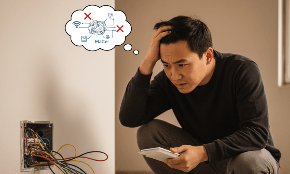 - Mua không tương thích: Bạn mua công tắc dùng sóng Wifi, cảm biến dùng sóng Zigbee, Hub trung tâm lại là Matter. Kết quả: Các thiết bị không “nói chuyện” được với nhau, hệ thống trở nên què quặt, không thể tạo kịch bản tự động.